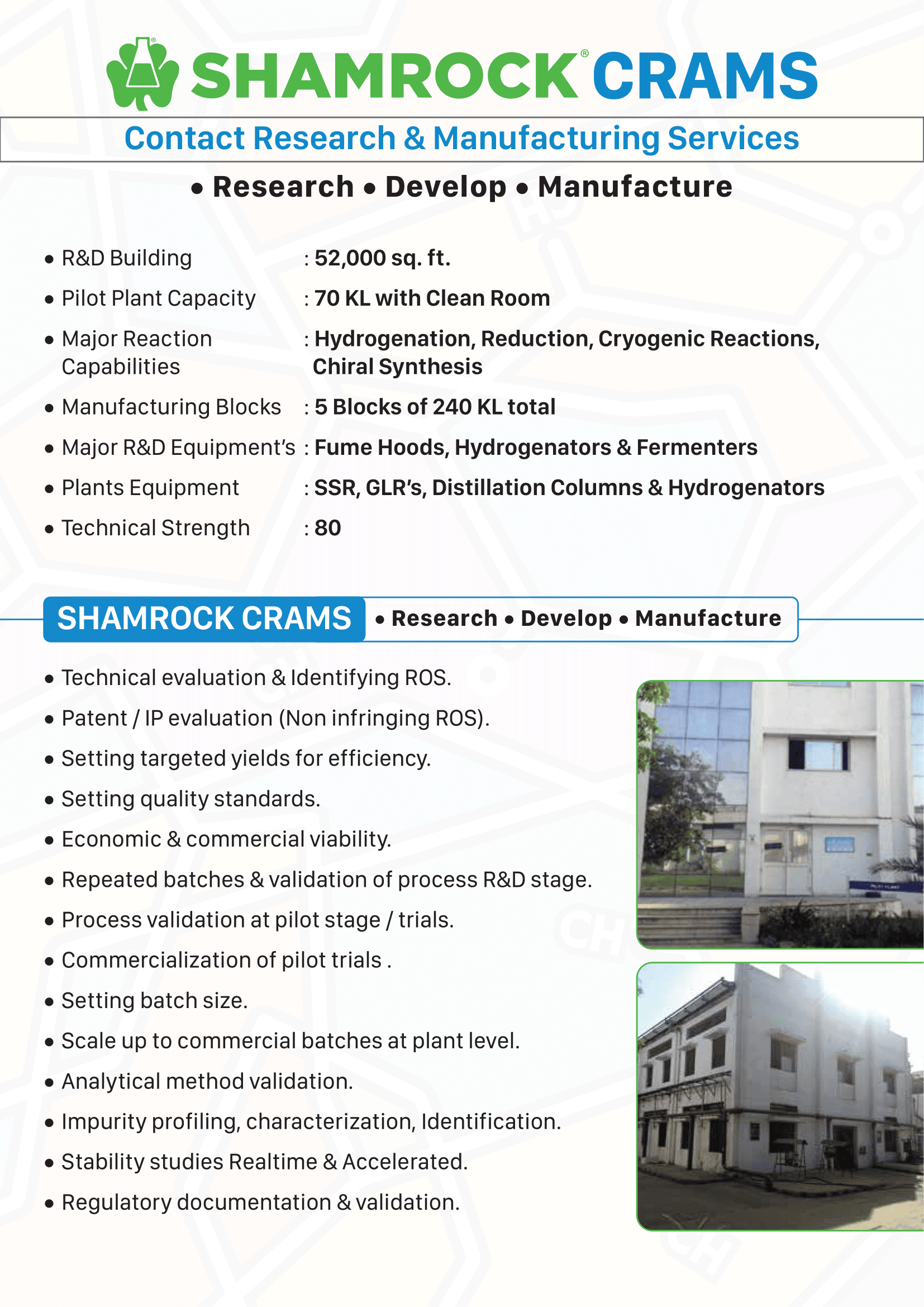 - Major R&D Equipment’s : Fume Hoods, Hydrogenators & Fermenters